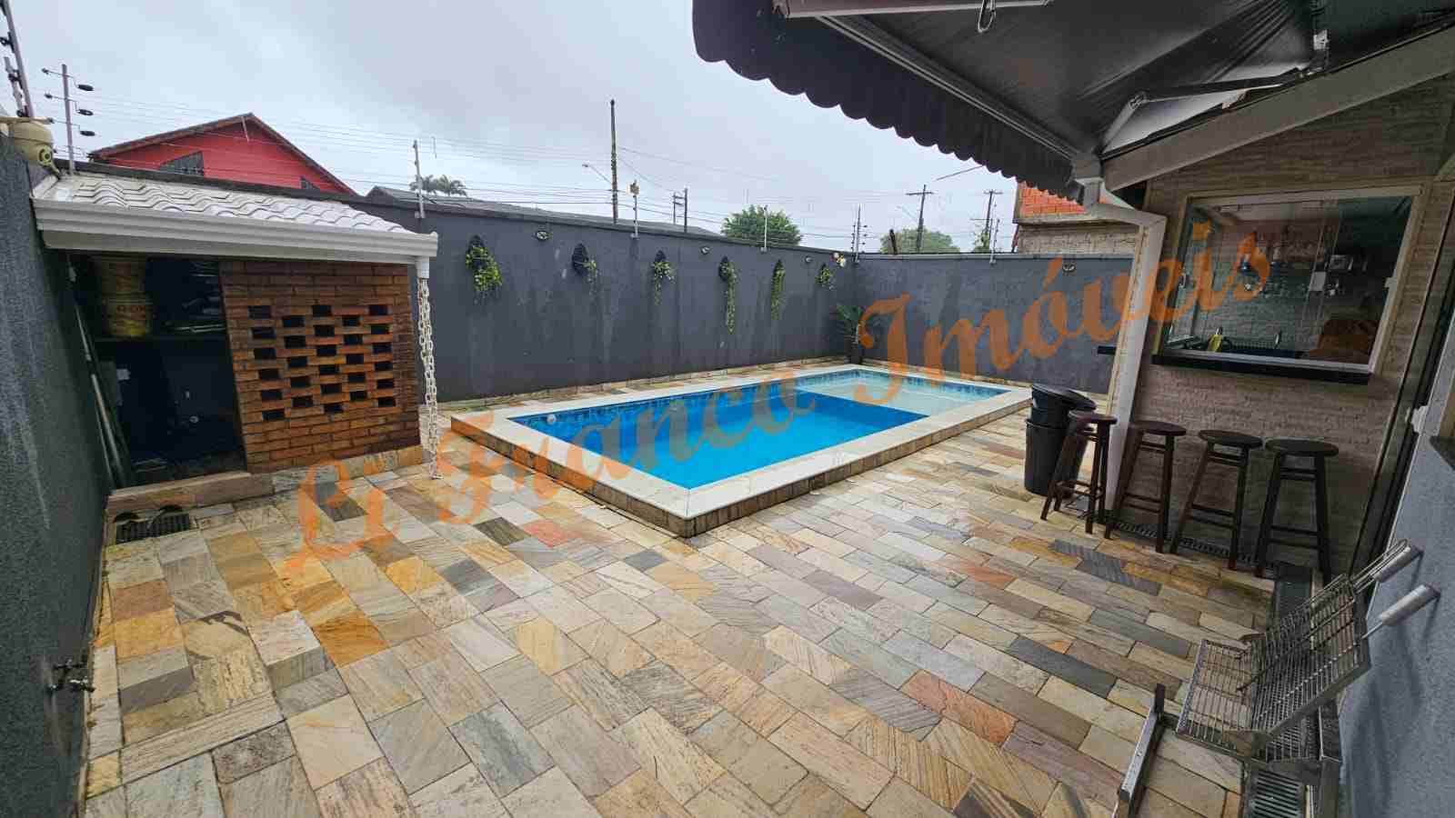 Na área externa, o imóvel se destaca com um espaço de lazer completo: piscina, área gourmet com churrasqueira e banheiro externo, oferecendo total comodidade para momentos de convivência e entretenimento. A garagem possui capacidade para 2 veículos.